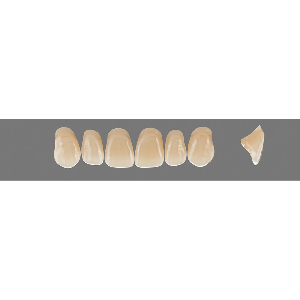 Outstanding physical properties and excellent aesthetics are combined in VITAPAN teeth. The intricate manual layering technique as well as the individual characterisation add a natural appearance to the teeth. Shade stability even after grinding, minimum water absorption and extremely low affinity to plaque ensure perfect results for demanding patients.