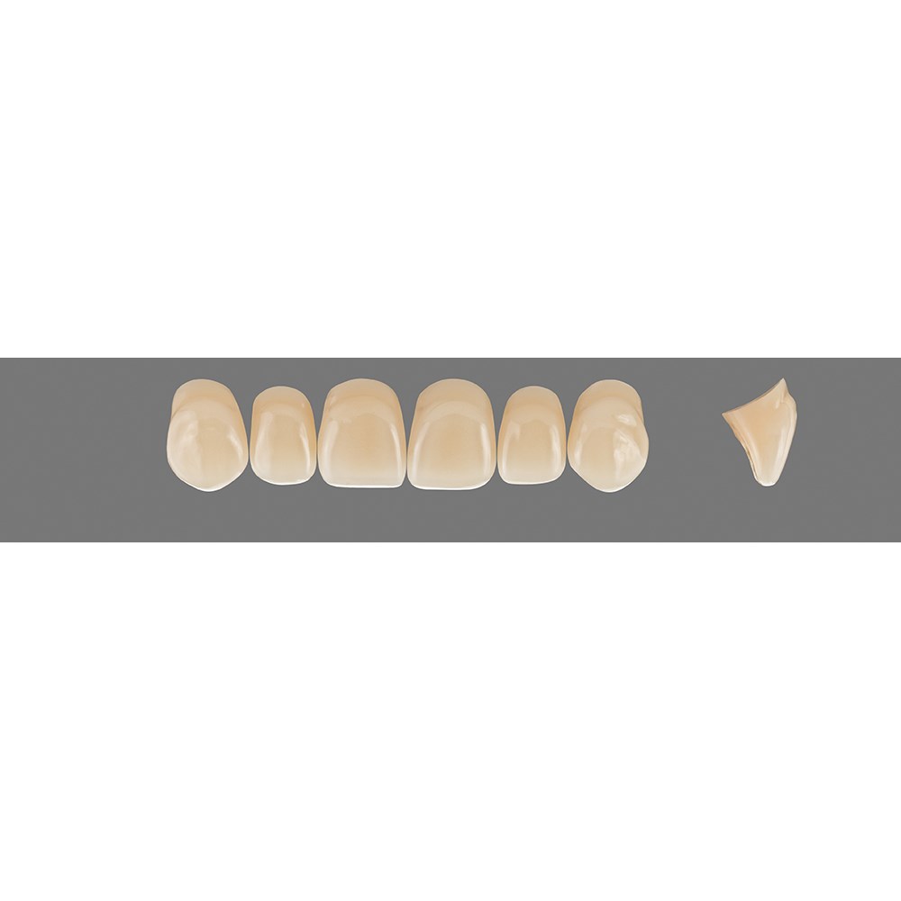 Age-appropriate, universal anterior teeth made of MRP composite.