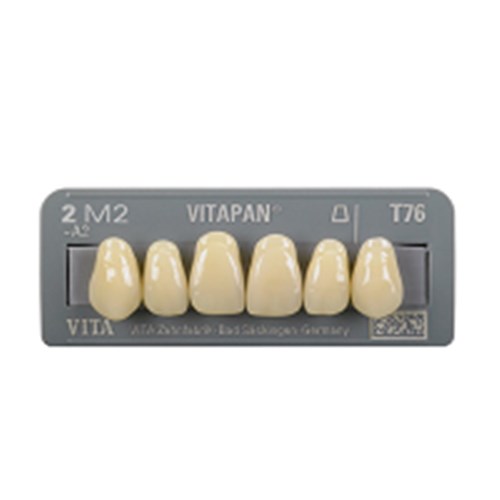 Outstanding physical properties and excellent aesthetics are combined in VITAPAN teeth. The intricate manual layering technique as well as the individual characterisation add a natural appearance to the teeth. Shade stability even after grinding, minimum water absorption and extremely low affinity to plaque ensure perfect results for demanding patients.