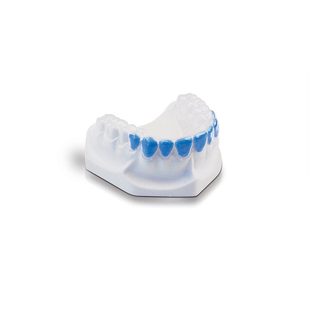 Soft pliable rubber like material, best suited for fabrication of bleaching splints. Material does not bond to acrylic. Hardness Shore A: 92.