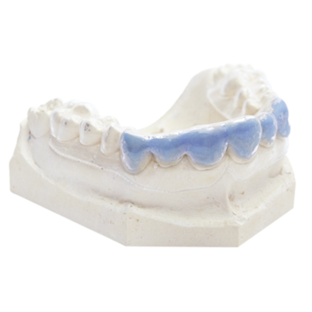Thermoforming blank made of polyethylen especially developed for bleaching and medical trays. Slightly flexible, also suitable for situations with slight undercut areas. Delivery including insulating foil for high, clear transparency.