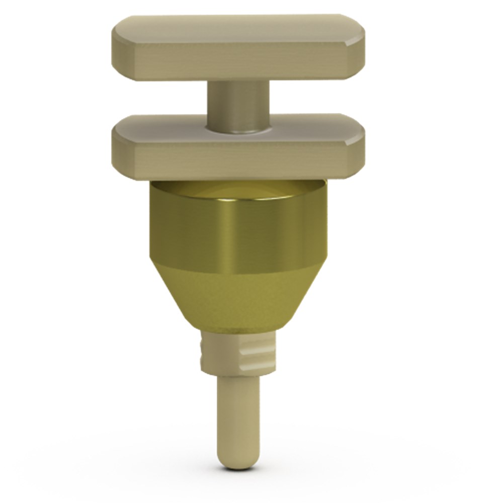 • Color-coded radiopaque titanium ring used to verify seating on a radiograph. Emergence matches the emergence of the corresponding healing abutment.