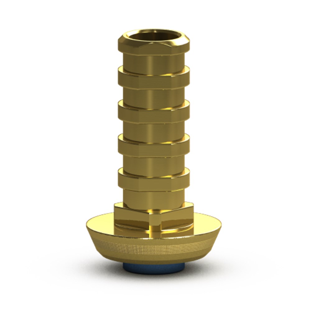 Use non-hexed for multiple-unit, screw retained, long term temporary restorations (>30 days). When a Laser-Lok component is used and temporarily removed for impression making or other restorative procedures, keep the removed Laser-Lok component in sterile saline until reinserting into the site. Packaged with an abutment screw (PXAS). Titanium Alloy for strength. TiN coated for esthetics. Final torque: 30 Ncm. Refer to the Prosthetic Technique Manual (L02015) for appropriate handling techniques.