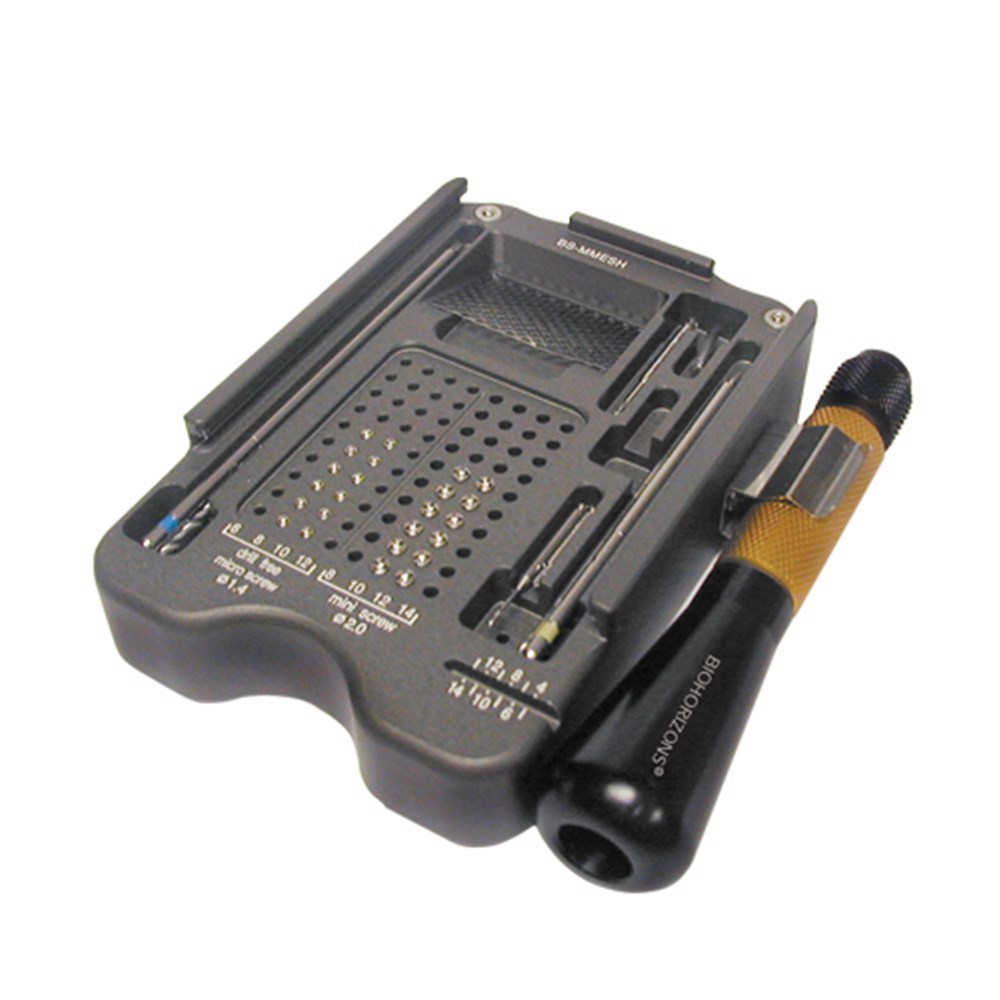Indicated for use in fixation of cortical onlay grafts and meshes and for membrane tenting used in Guided Bone Regeneration. The kit is compact and conveniently organized for efficient retrieval of instruments and screws. It includes cortical bone drills for both latch-type and friction-grip handpieces.