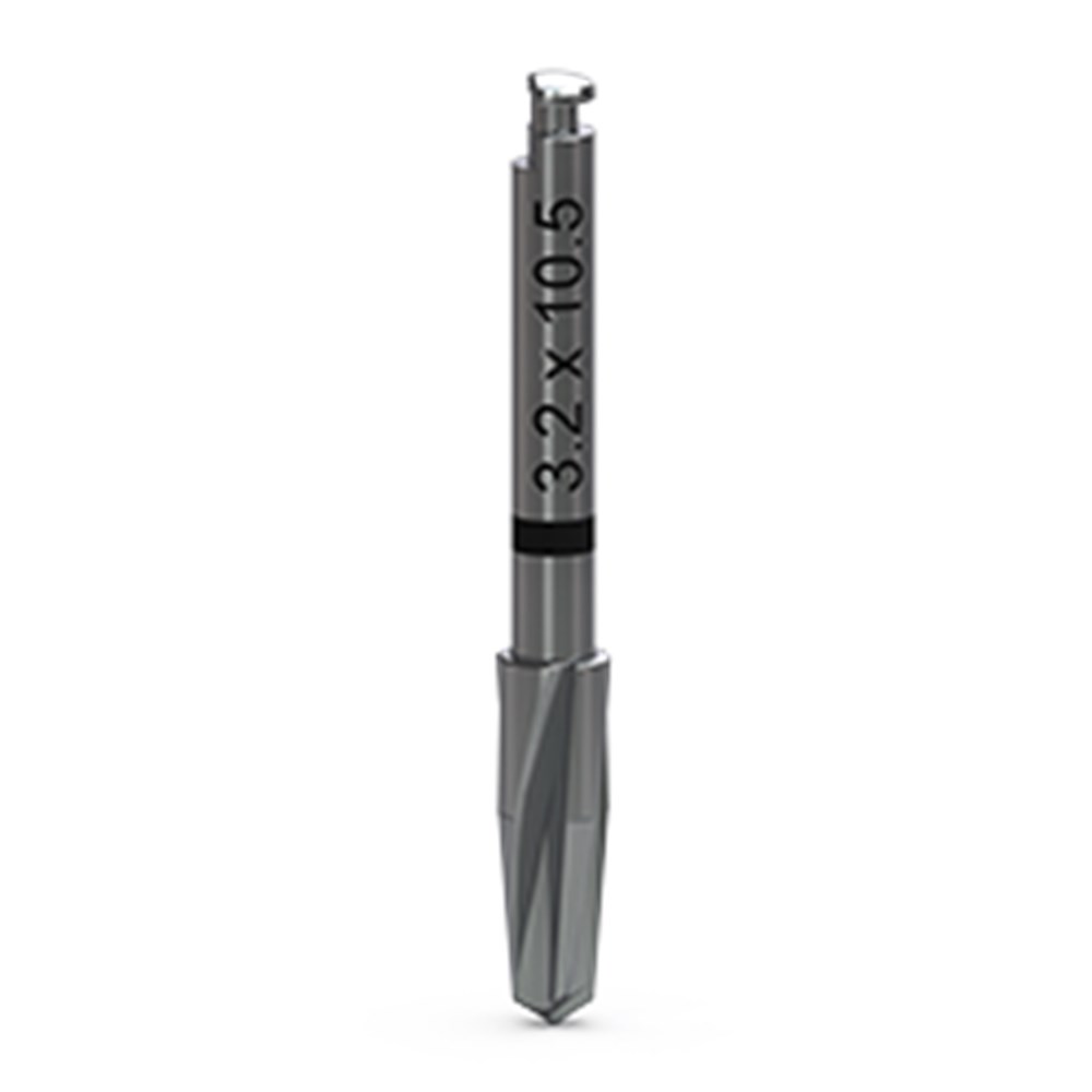 Tapered 4.2 implants can be placed with existing Tapered HD drills or new Length drills. Length Drills feature cutting flutes that match the length of the implant, acting as a clear visual aid to indicate the appropriate drilling depth. Each drill is laser marked with a single band 3mm from the cutting flute to help identify depth of placement or tissue height.