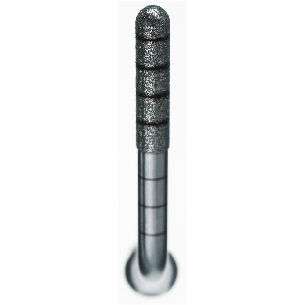 Cylindrical diamond-coated tip dedicated to drill and widen the access canal to the membrane. Diameter 2.35 mm