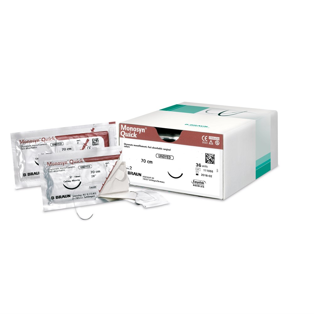 Aesculap Suture Monosyn Quick, Undyed, 4/0, HR17, 1/2 Circle Taper, 70cm x 36-Pack