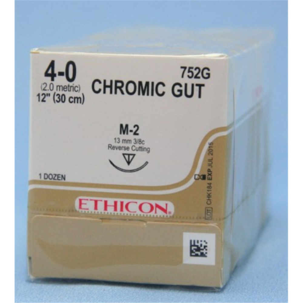 Johnson & Johnson Suture Ethicon Chromic Gut, 4/0, 13mm M2, 3/8 Circle Reverse Cut, 12-Pack