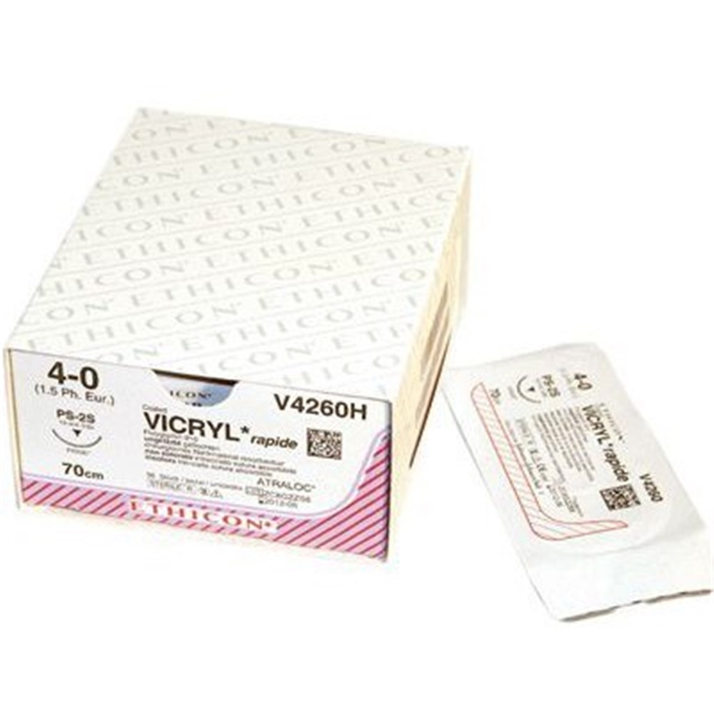 Johnson & Johnson Suture Ethicon Vicryl Rapid, 16mm, 4/0, PC3, 3/8 Circle Conventional Cut, 12-Pack