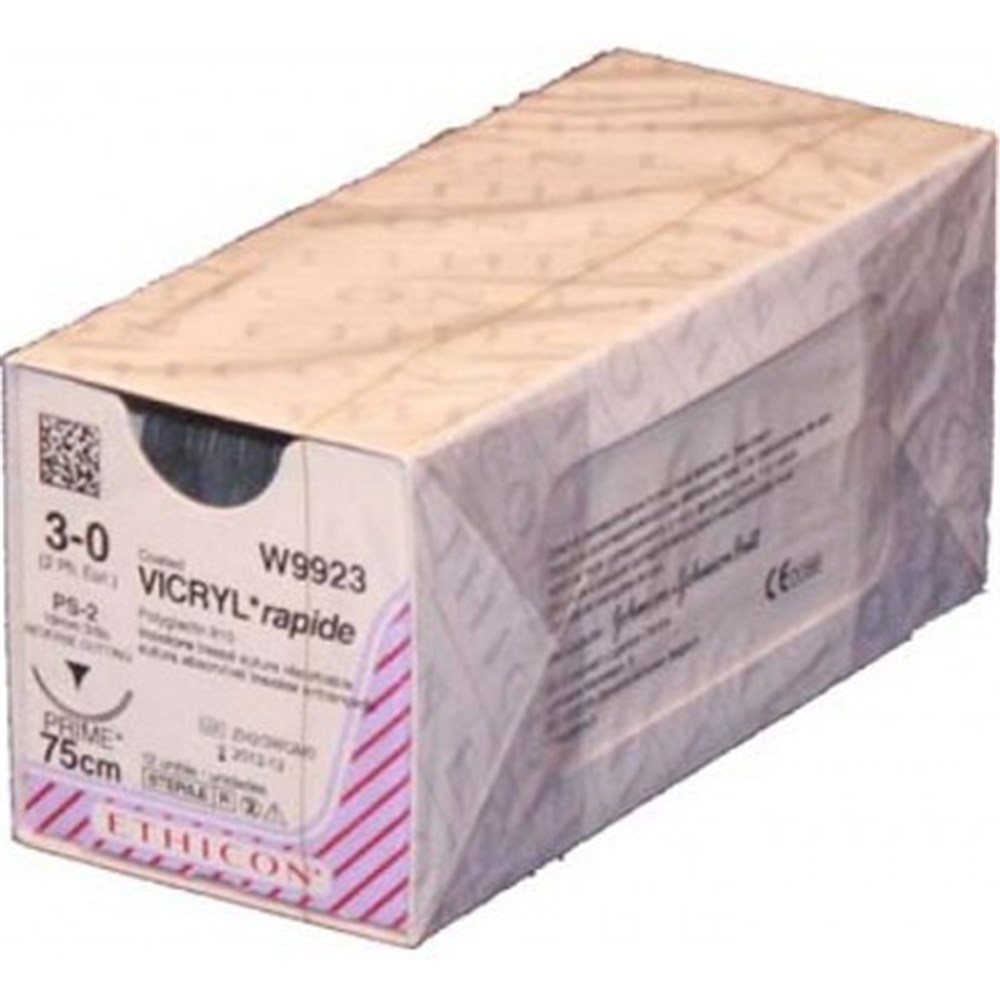 Johnson & Johnson Suture Ethicon Vicryl Rapid, 22mm, 3/0, P Needle, 1/2 Circle, 12-Pack