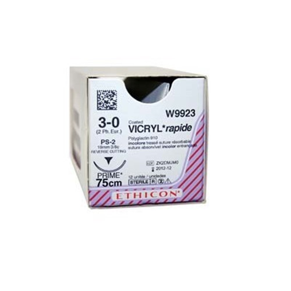 Johnson & Johnson Suture Ethicon Vicryl Rapid, 4/0, 19mm, PS2, 3/8 Circle Reverse Cut 75cm