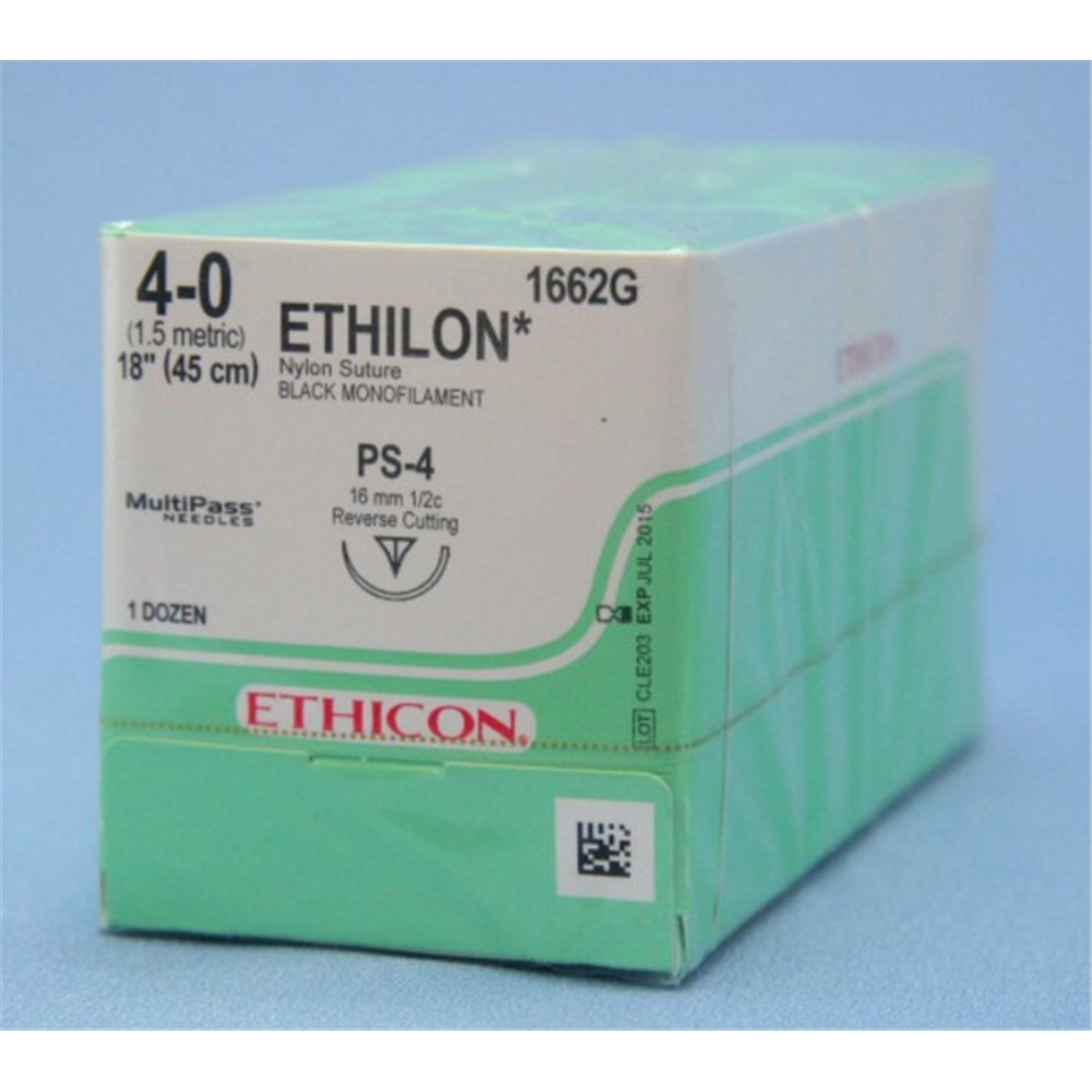 Johnson & Johnson Suture Ethicon Nylon, 4/0, 19mm, FS2, 3/8 Circle Reverse Cut, 12-Pack