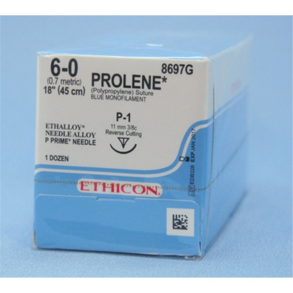 Johnson & Johnson Suture Ethicon Prolene, 13mm, 6/0, P1, 3/8 Circle Reverse Cut, 12-Pack