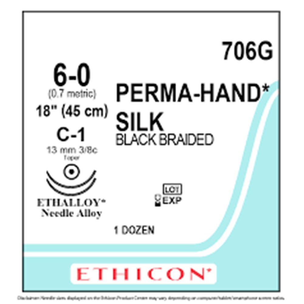 Johnson & Johnson Sutures ETHICON, Silk, 13mm, 6/0, C1 3/8 Circle Taper Point, 12-Pack