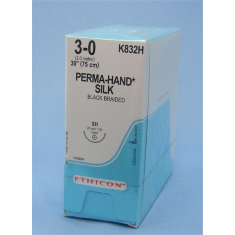 Johnson & Johnson Suture Ethicon Silk, 26mm, 3/0, SH, 1/2 Circle Taper Point, 36-Pack