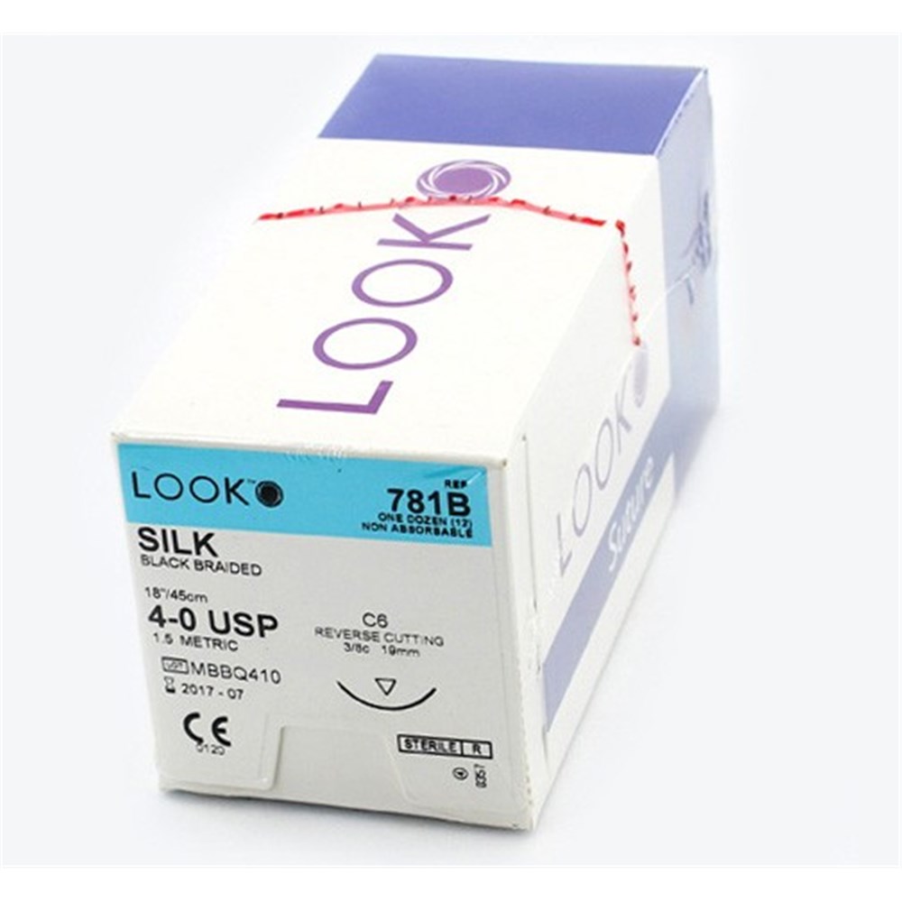 LOOK Silk Suture, 781, 4/0, 19mm, C6 Circle Reverse Cut, 12-Pack