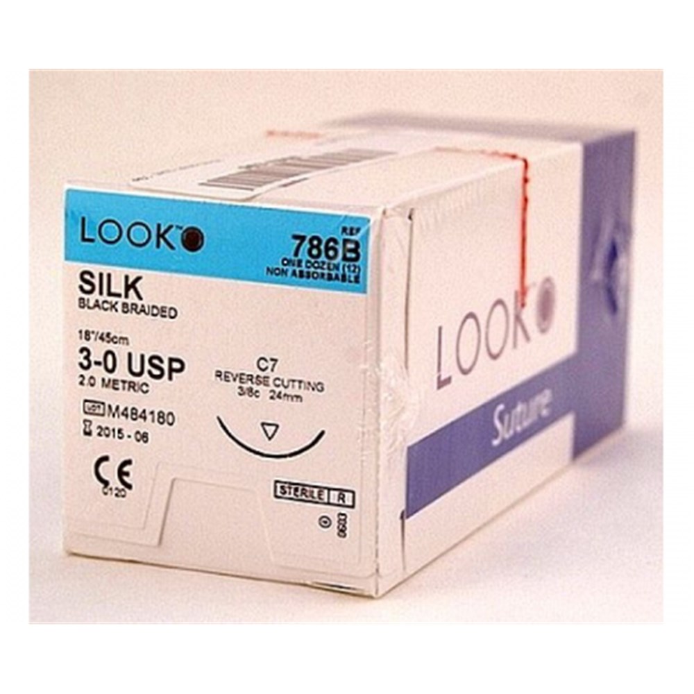 LOOK Silk Suture, 786, 3/0, 24mm, C7 Circle Reverse Cut, 12-Pack