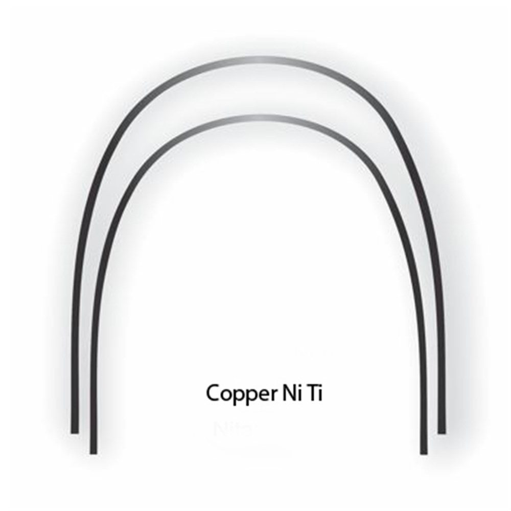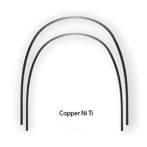 Heat Activated Nitanium with Copper remains soft at room temperature for easy wire insertion, even in the most severe cases.  This wire provides continuous force even at very small deflections, which reduces the frequency of wire changes.  The smooth surface finish reduces friction for faster tooth movement.  It's unloading (springback) properties facilitate faster and more efficient tooth movement.  Ni Ti with Copper allows the wire to be easily engaged before full activation at body temperature.Right Form Arch Shape which is the same as ProForm.Pack of 10.
