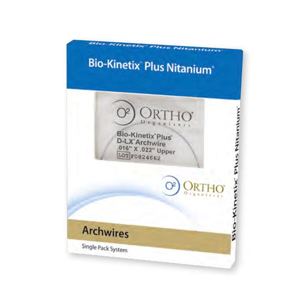The Bio-Kinetix Plus Archwire is ideal for early-to-mid stage treatment with moderate to severe crowding. Once the wire is placed, it then reacts to the heat in the patient's mouth and exerts a light, continuous force as it returns to its original shape.In addition, the advanced thermal properties found in the archwire display a narrower transformation band from martensite to austenite which gives the archwire a "crisp" response as it moves between "soft" and "stiff" state.Features of the Bio-Kinetix Plus archwire:Forces fall directly between Bio-Kinetix Theramlly Activated Nitanium Archwires and Super Elastic Nitanium Archwires.Temperature Transition Range (TTR) = 65 -75 degrees F. (18.3 -23.9 degrees Celsius)Utilizes shape memory and super elastic properties to move teeth.Excellent shape characteristics and resiliencyWire is slightly thermal at room temperature for easy ligation.Responsive to chilling for easier ligation.Has a smooth finish for minimal friction.Each archwire is individually packaged in convenient autoclavable pouches and requires less inventory because their Universal Shape can be used in both the Maxillary and Mandibular arches.DL-X Shape (Damon Arch Shape)Pack of 10.