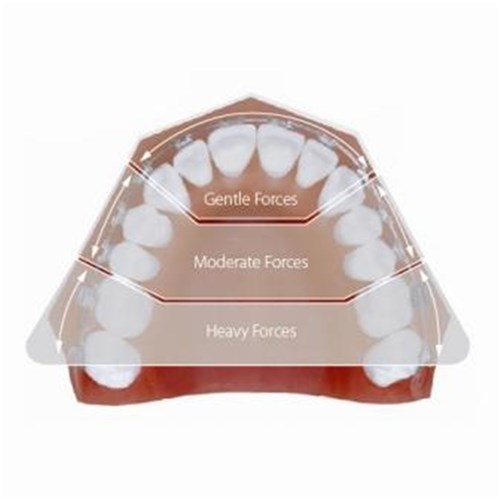 The Variable Force 3 Archwire is a heat activated, multi-force, nickel titanium archwire with three distinct force regions. The Variable Force archwire places the correct force level to the appropriate region (anterior, bicuspid and posterior) of the arch to quickly torque, level and align, without sacrificing patient comfort.  It could take multiple archwire changes with any other archwire to achieve the same level and alignment results. This archwire is easy to place because the thermal mechanics allow the wire to stay soft when not in the mouth and once placed into the warmth of the mouth the wire takes on its memory shape. This thermal nitanium archwire has a multi-step manufacturing process which consistently creates three different zones of forces along the archwire. The Variable Force 3 archwire provides forces that range from 50 grams in the anterior, up to 300 grams in the posterior region depending on the archwire size.One archwire provides the benefits of three archwires:Distinct forces to the anterior, bicuspid and posterior regions.Ideal biological forces for efficient tooth movement.Reduce the number and frequency of wire changes.Allows for longer treatment intervals.Greater patient comfort.Superior shape integrity.Pro Form Arch Shape.Pack of 10.
