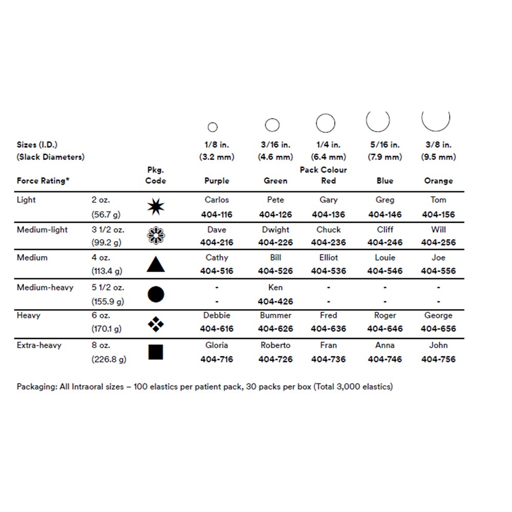 100 elastics per patient pack, 30 packs per box (Total 3,000 elastics)