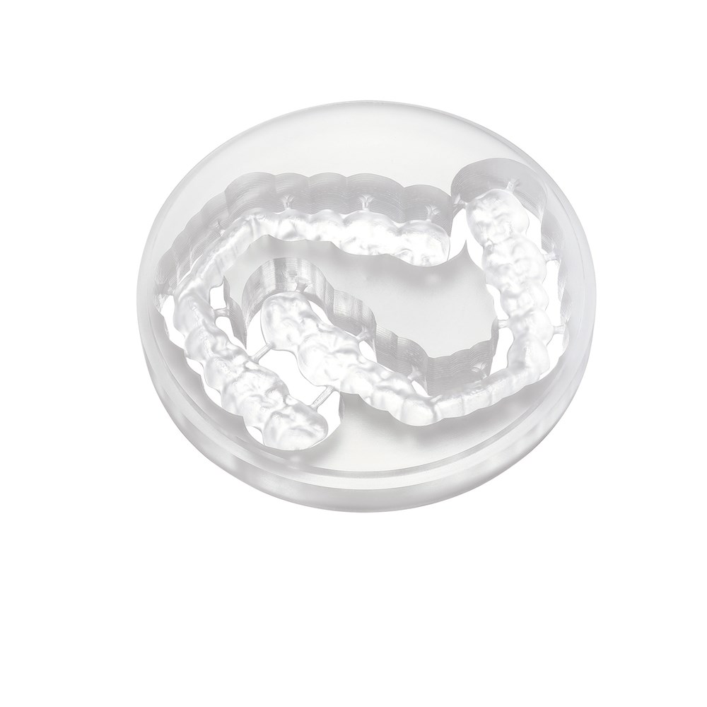 The unique manufacturing process guarantees permanent tastelessness of the finished splints. Available as milling blank in thicknesses of 16 and 20 mm and as cold-curing resin for use in the casting and pressing techniques.
