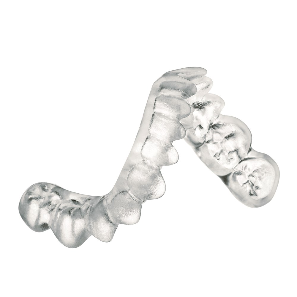 MMA-free material for the fabrication of functional occlusal splints with thermoplastic memory effect.