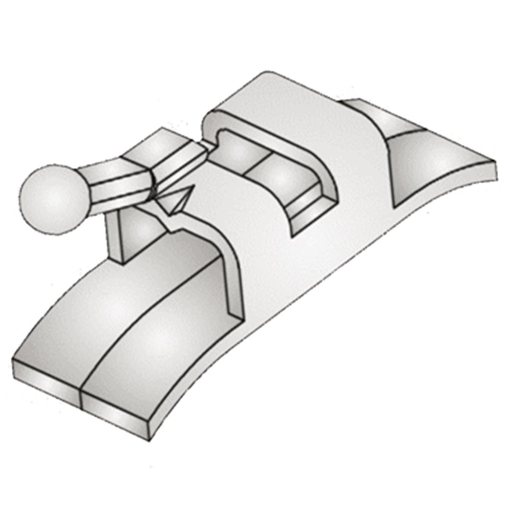 .036"  Horizontal Hook, slotted, latching indent.  This lingual attachment may be welded to create your preferred band assembly. Suitable for UR and LL. Pack of 10.