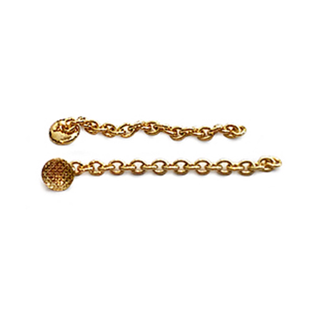 24K gold plated for nickel sensitive patients.20mm traction chain.3.5mm diameter round contoured base.80 gauge foil mesh base.Eyelet welded to base.Pack of 5.