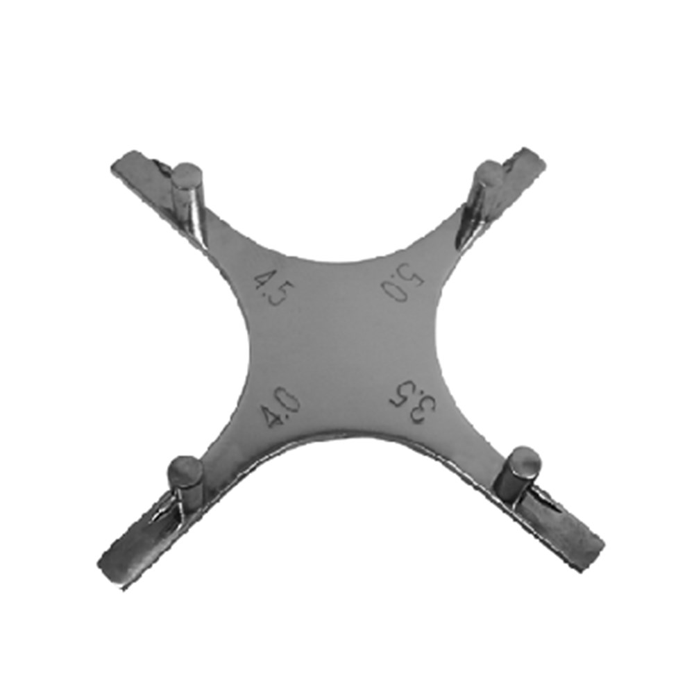 This unique gauge is placed on the incisal/occlusal surface of the tooth to simplify bracket positioning.  Measure 3.5mm; 4.0mm; 4.5mm and 5.0mm.