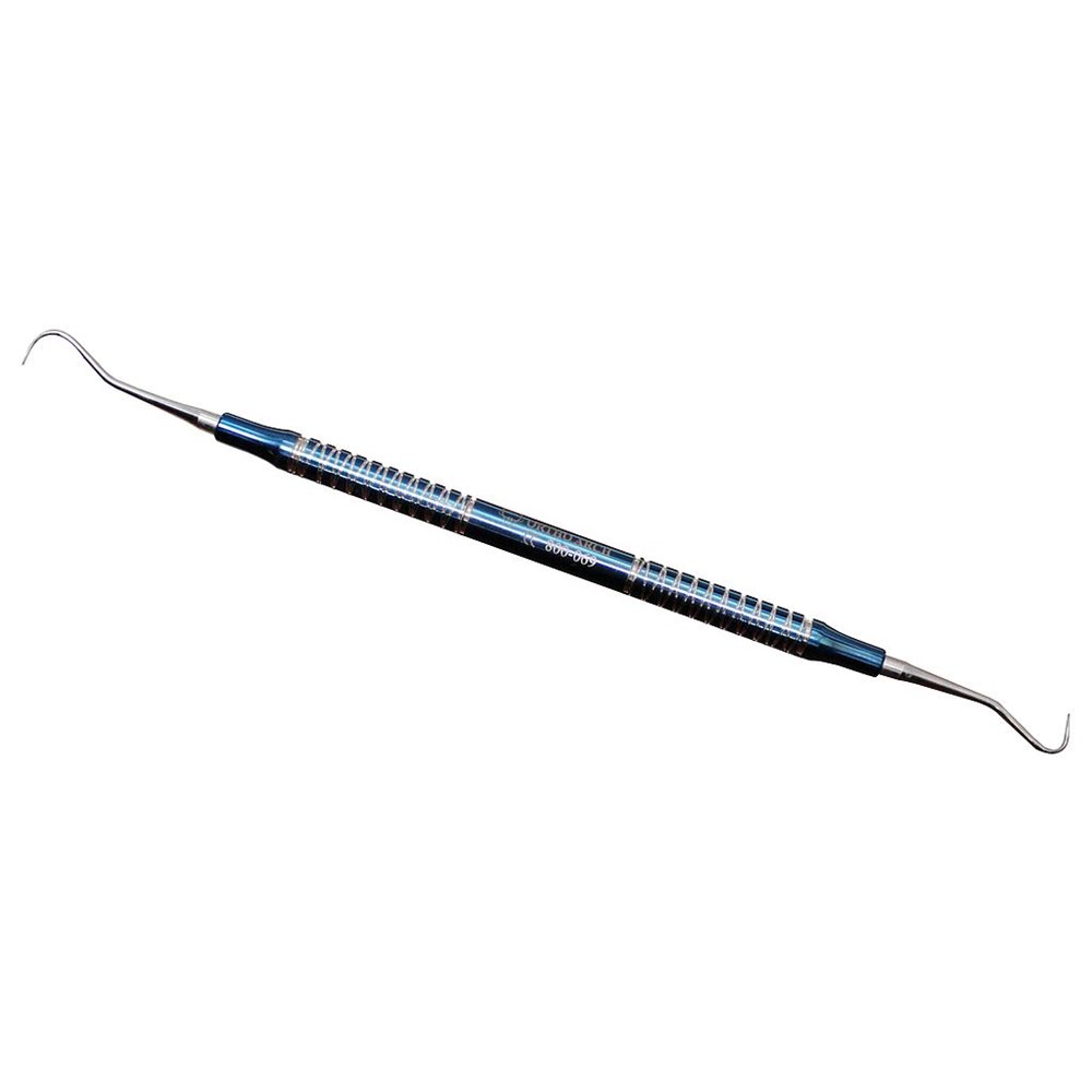 The spiral tip is designed to easily remove elastic ligatures.  Blue handle.
