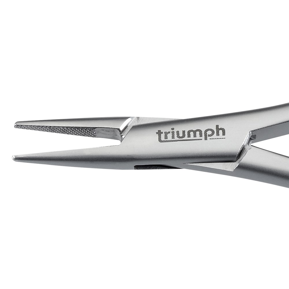 • This ultra fine tip Mathieu style needle holder has serrated tips.