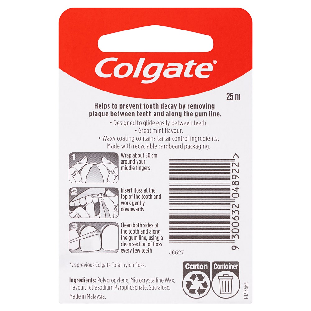 Colgate Total Tartar Control Dental Floss with Mint Flavour, slides easily between the teeth and reaches areas that brushing can't - for improved mouth health