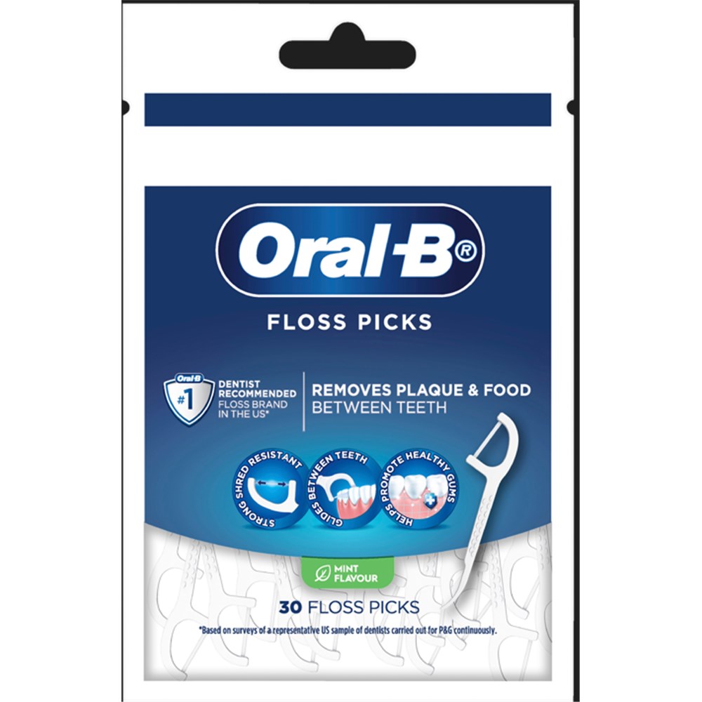 Oral-B Floss Picks removes plaque and food between teeth.