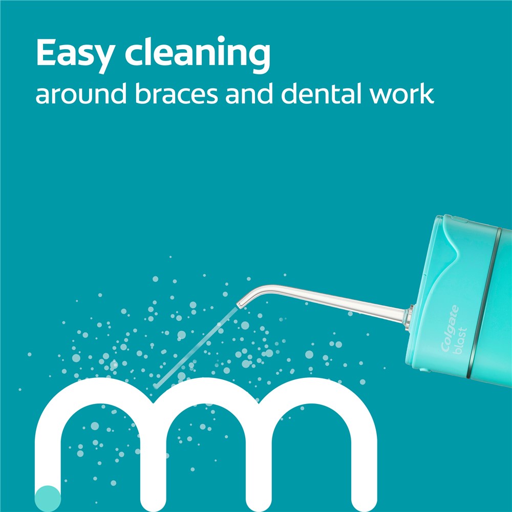 Colgate Blast Cordless Water Flosser provides better flossing* for a cleaner feeling**. It gives you the easy clean for all those tricky in-betweens in your mouth and along your gums.