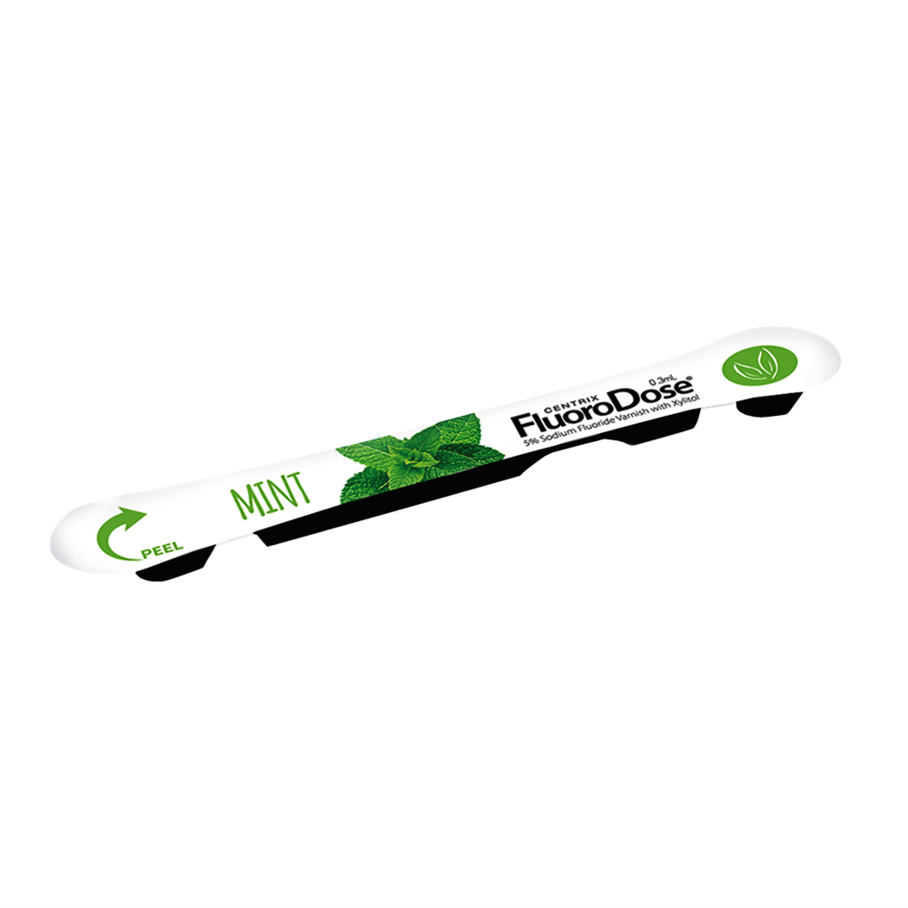 FluoroDose contains 5% sodium fluoride, the maximum dosage allowed in a convenient single-use LolliPack®.
