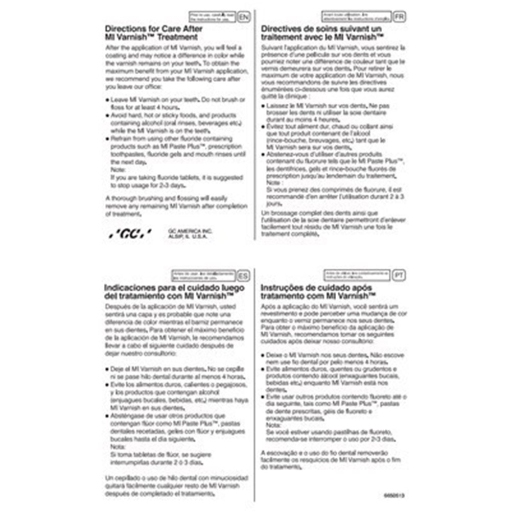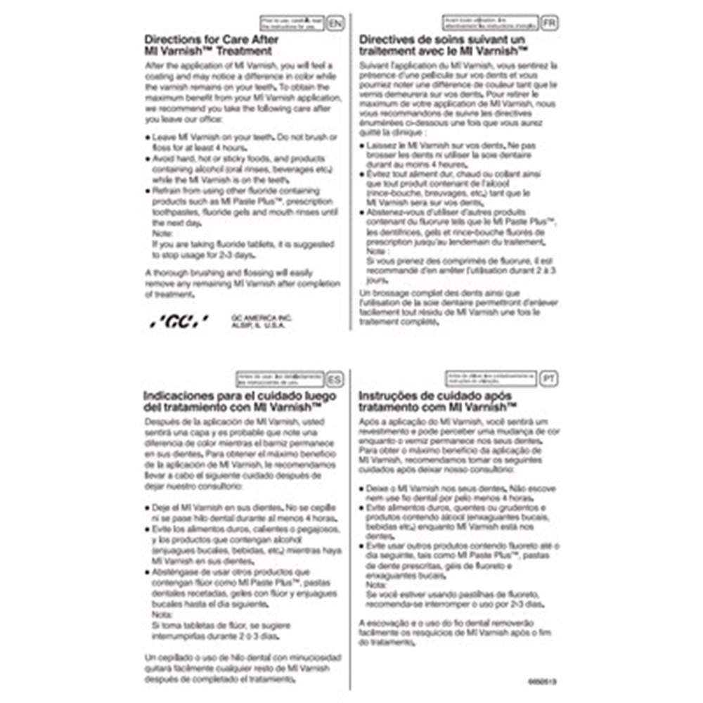 GC MI Varnish - After Use Instructions - Pad of 50 Sheets