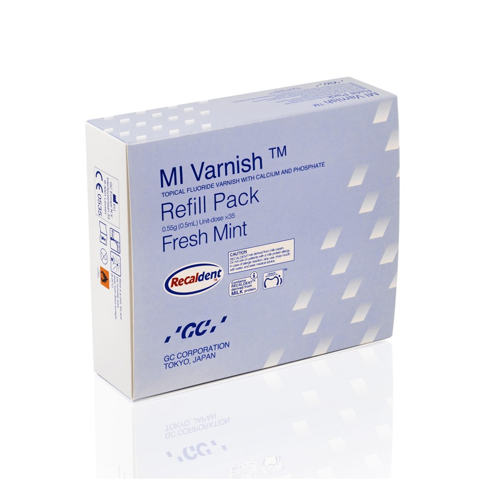 Thanks to the patented Recaldentâ„¢ technology, MI Varnish gives patients a head start in caries protection when fluoride, calcium and phosphate combine and form a strong protective coating. The neutral pH of 6,6 enhances enamel acid resistance and inhibits demineralisation.