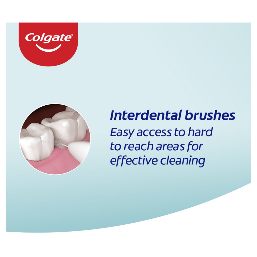 The Colgate Interdental Brushes come in an 8 pack and provide easy access to hard to reach areas for effective cleaning.