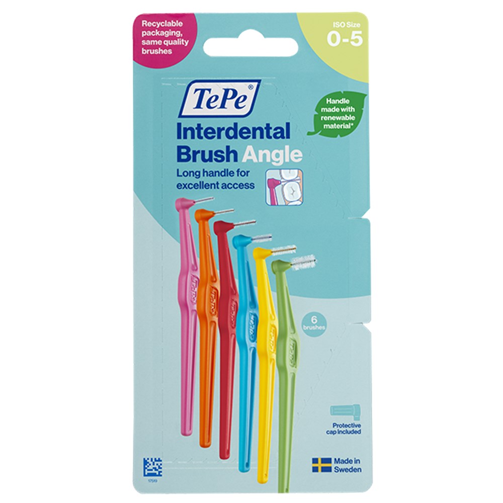 TePe Angle is available in six colour coded sizes, all with plastic coated wire for safe use.