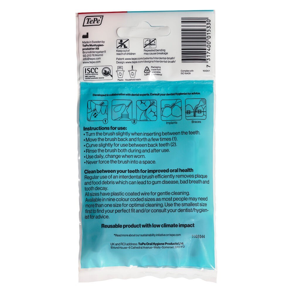 An interdental brush by TePe, designed to clean the gaps between the teeth, where a regular toothbrush is unable to reach. Use daily to keep gums and teeth healthy and fresh. The interdental brush can be used for cleaning between teeth, implants, crowns, and bridges. It's also suitable for cleaning around brackets and wires during orthodontic treatment.