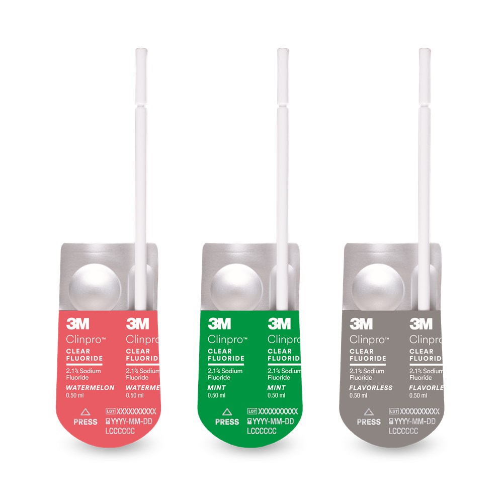 3M™ Clinpro™ Clear Fluoride Treatment is a water-based, rosin-free formula that’s ready to apply and provides protection to enamel and dentine surfaces. This fluoride treatment features a ready-release formula that enables effective fluoride uptake with a minimum contact time of just 15 minutes.
