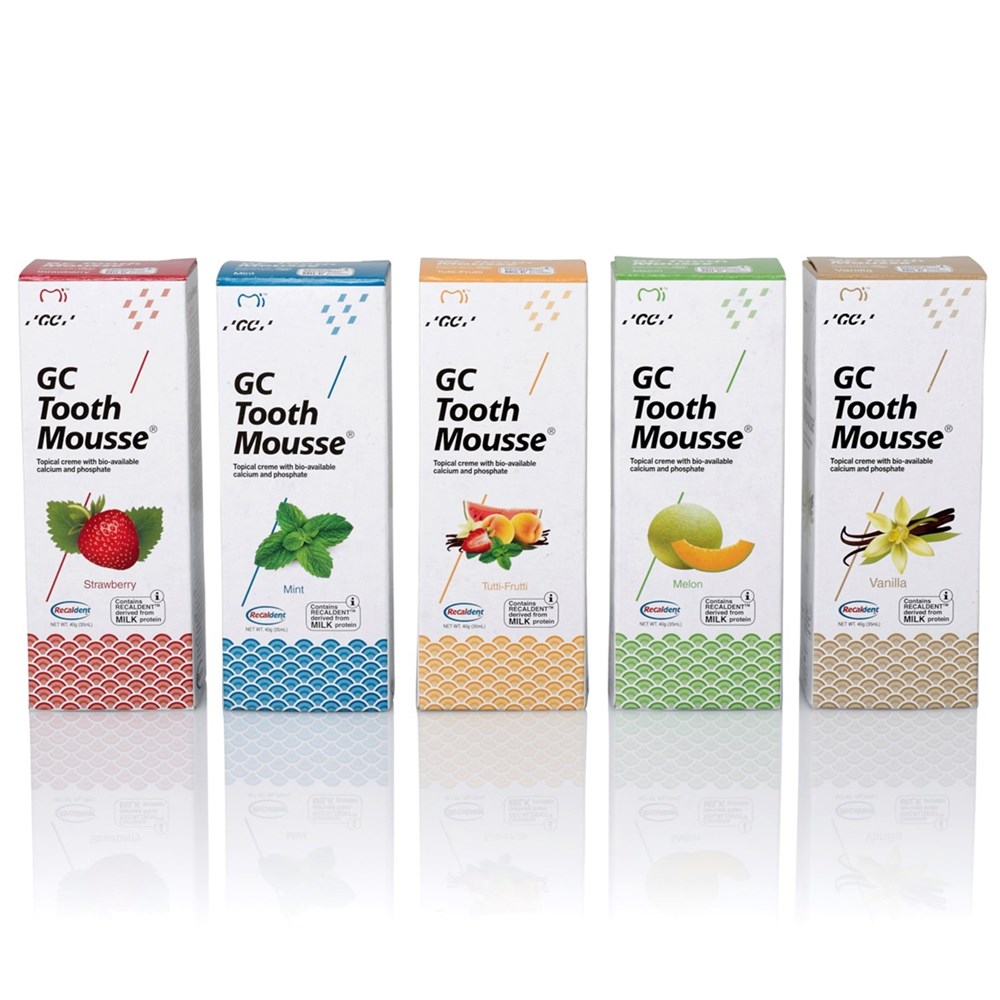 GC Tooth Mousse™ is a delicious tasting crème that contains calcium and phosphate; the major minerals teeth are made from.