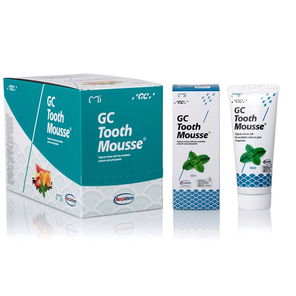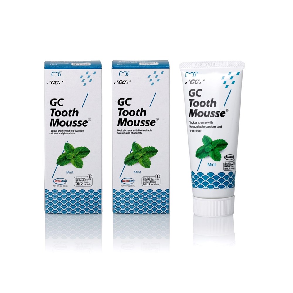 GC Tooth Mousse™  is a delicious tasting crème that contains calcium and phosphate; the major minerals teeth are made from.