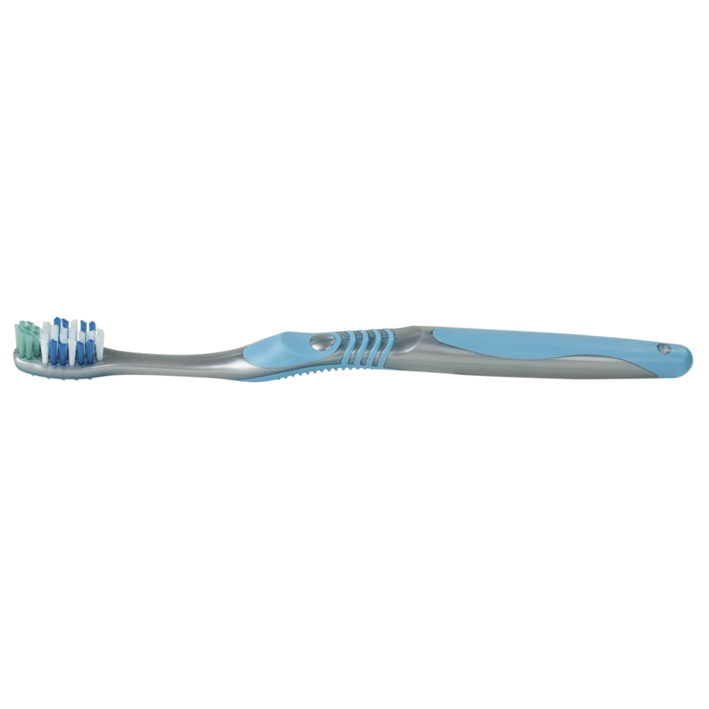 Soft–Compact Head–32 Tuft with Tongue Cleaner. Triple-level, diamond-polished bristles for better