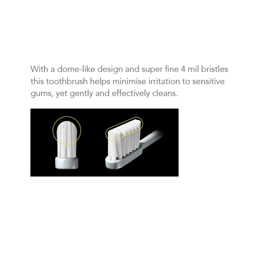 Ruscello Toothbrush range from GC, prescribed by the dental professional according to the patients oral condition and age. Ruscello toothbrushes feature an ergonomically shaped handle that provides a stable, comfortable grip and allows the brush to reach posterior and anterior teeth easily. Also featuring a range of head sizes and bristle orientation for a truly individualised approach.