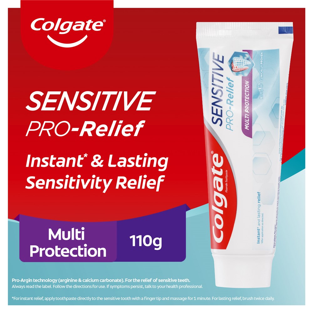 Pro-Argin® formula is clinically proven to seal the opening to exposed nerves for long lasting pain relief. Colgate® Sensitive Pro-Relief™ Multi Protection also helps fight cavities, reduce plaque, promote gum health and strengthen enamel.