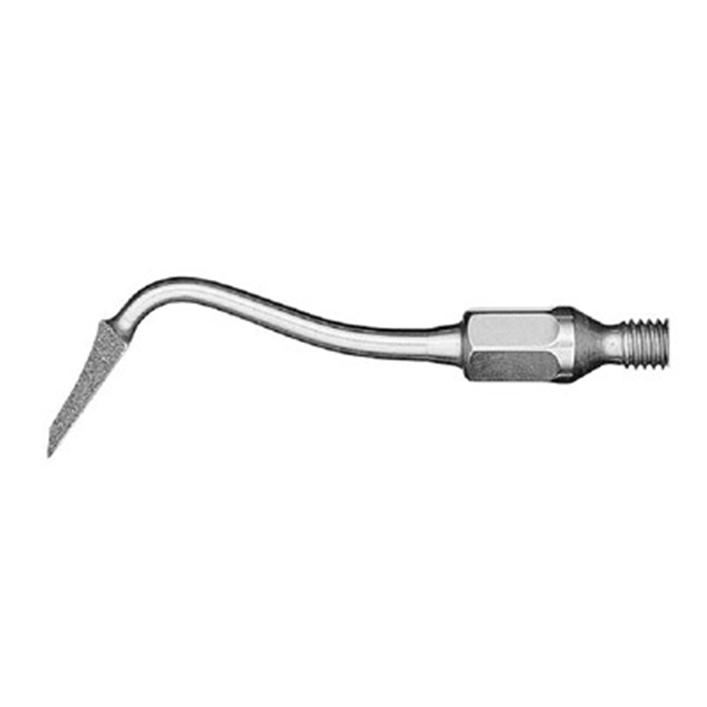 Mesial, diamond coated tip to be used for precise preparation of various bevel-angles around margins, after "rough preparation" with rotary instrument; this enables improved dental restoration.