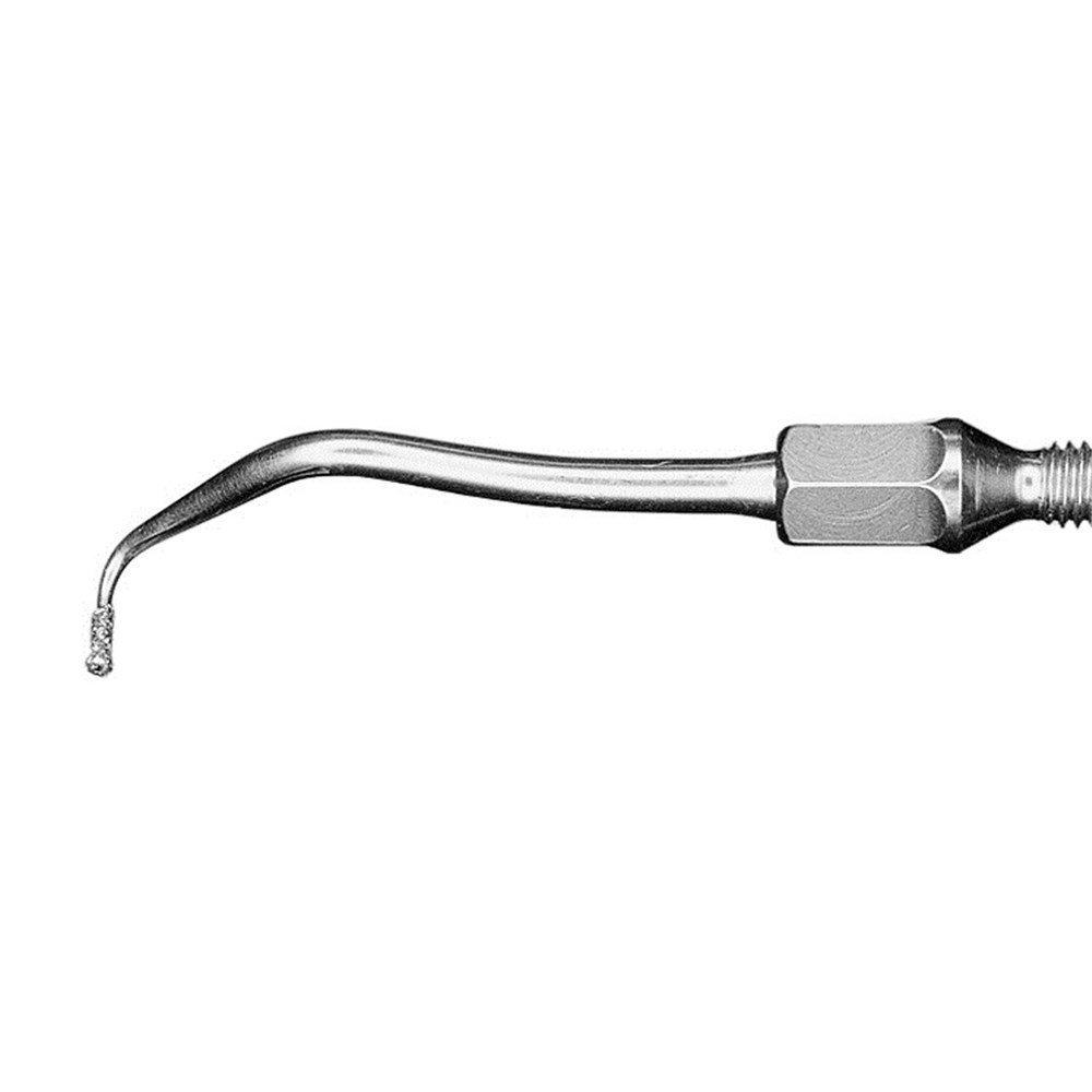 - Small, elegantly designed tips, for axially-aligned, retrograde root canal preparation in the front and side teeth areas, with minimum bone defects