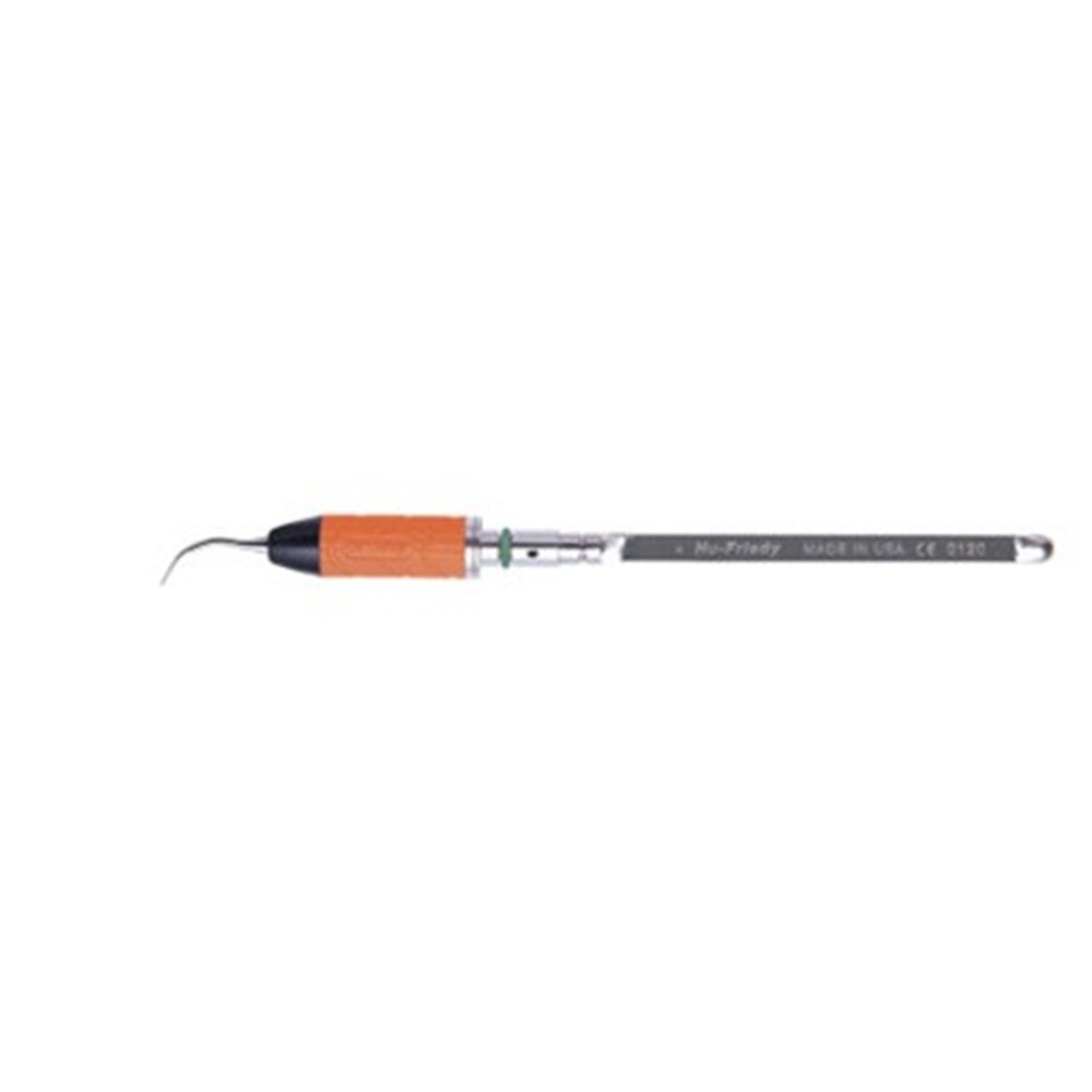 Swivel Direct Flow #1000. Standard size triple bend shank extending to a tapered tip with beveled edges. Tip is diamond-shaped in cross-section. Direct Flow water delivery allows water to exit near the tip, focusing water flow directly on the tip while reducing excess spray and increasing visibility. For use on moderate to heavy deposits, tenacious calculus and orthodontic cement. Use on low to high power settings. Triple bend shank allows increased access around line angles and interproximally. Beveled tip edges concentrate energy on tip corners and enhance removal of heavy calculus and stain. Ergonomic Swivel handle provides the maneuverability and adaptability you want in power scaling; with a slight rolling motion of your fingertips, the old "start, stop, remove and readjust" routine is eliminated--allowing even more efficiency while power scaling. Orange silicone handle. Color-coded handle provides at-a-glance tip identification.